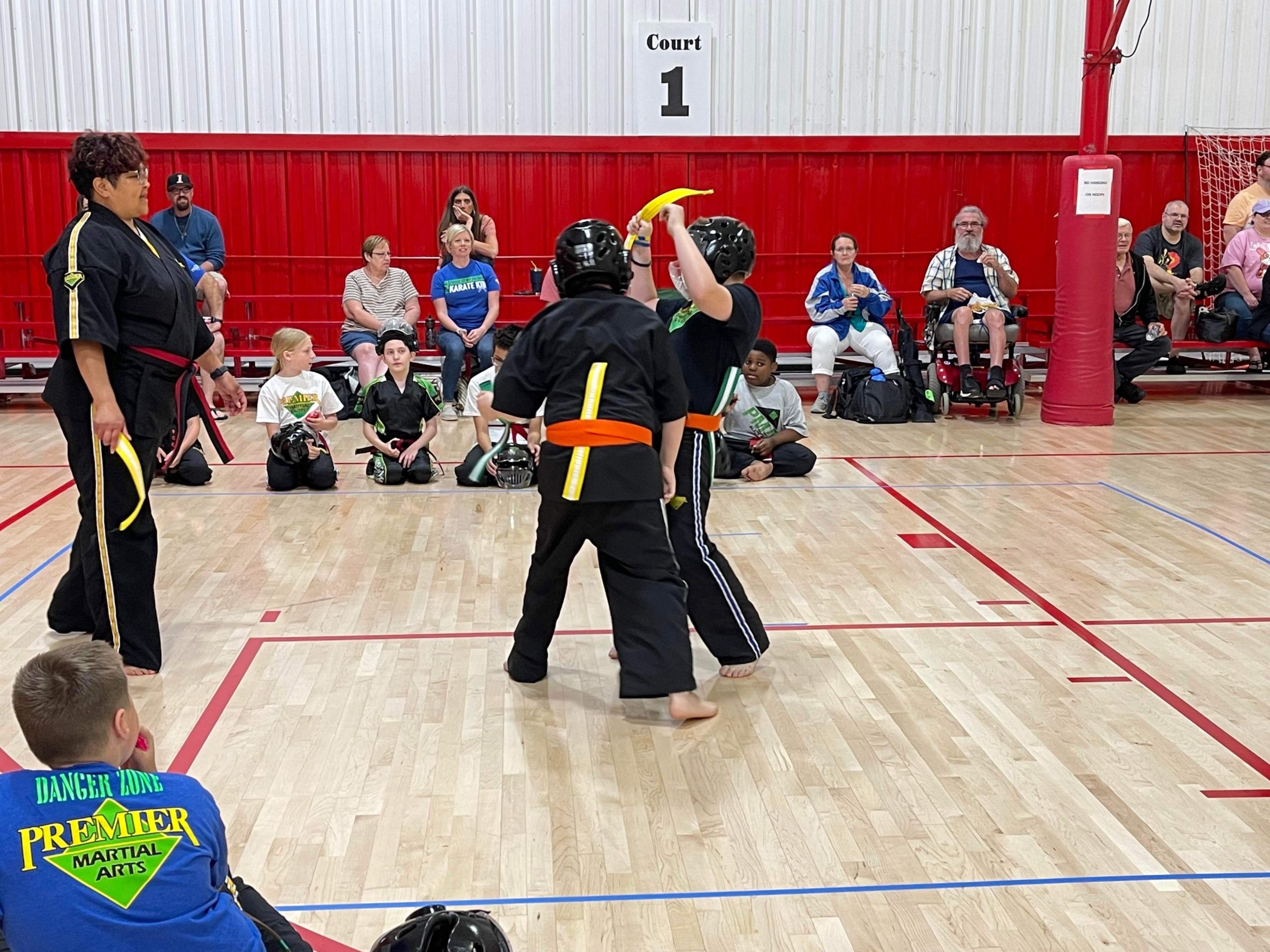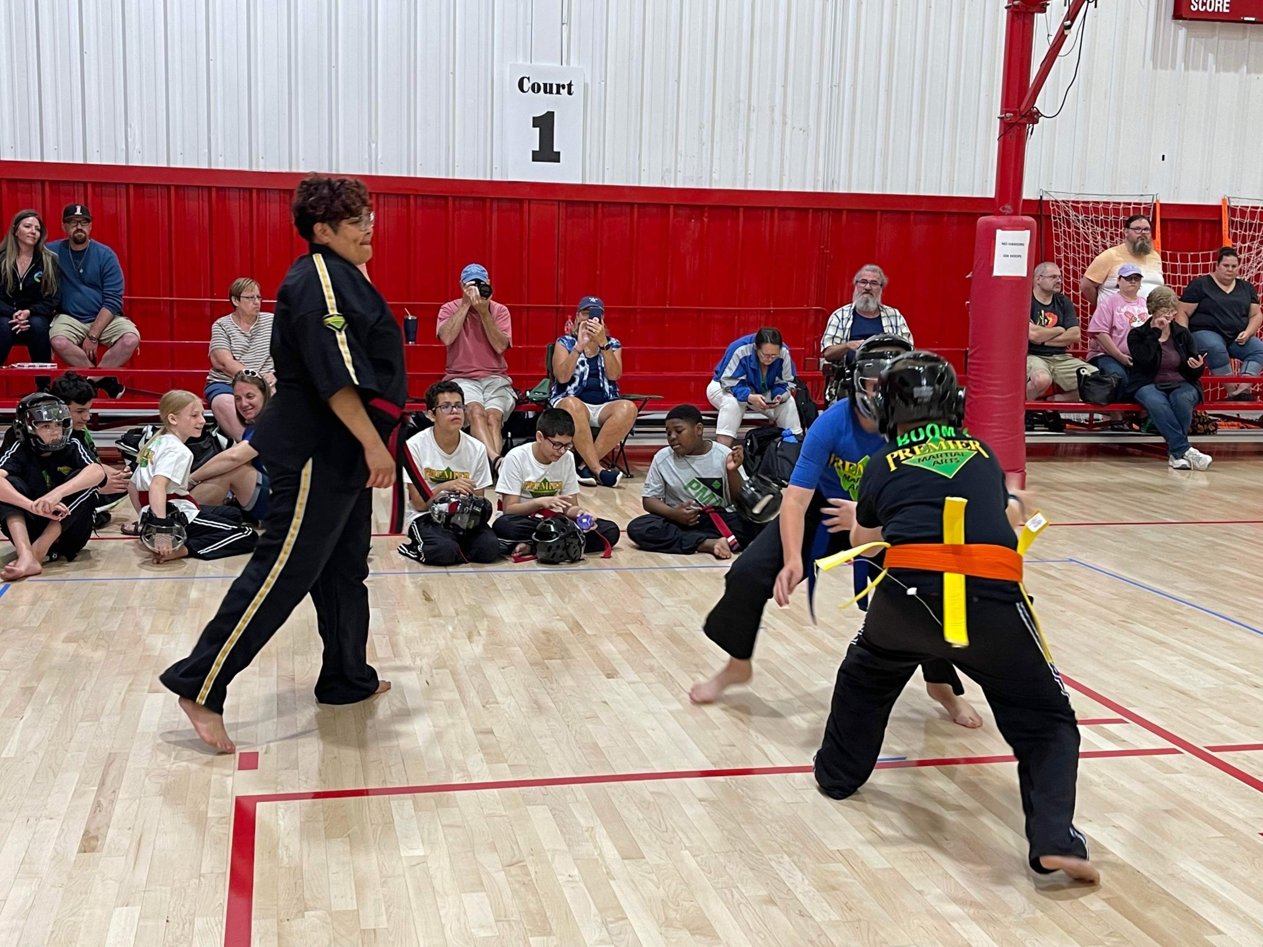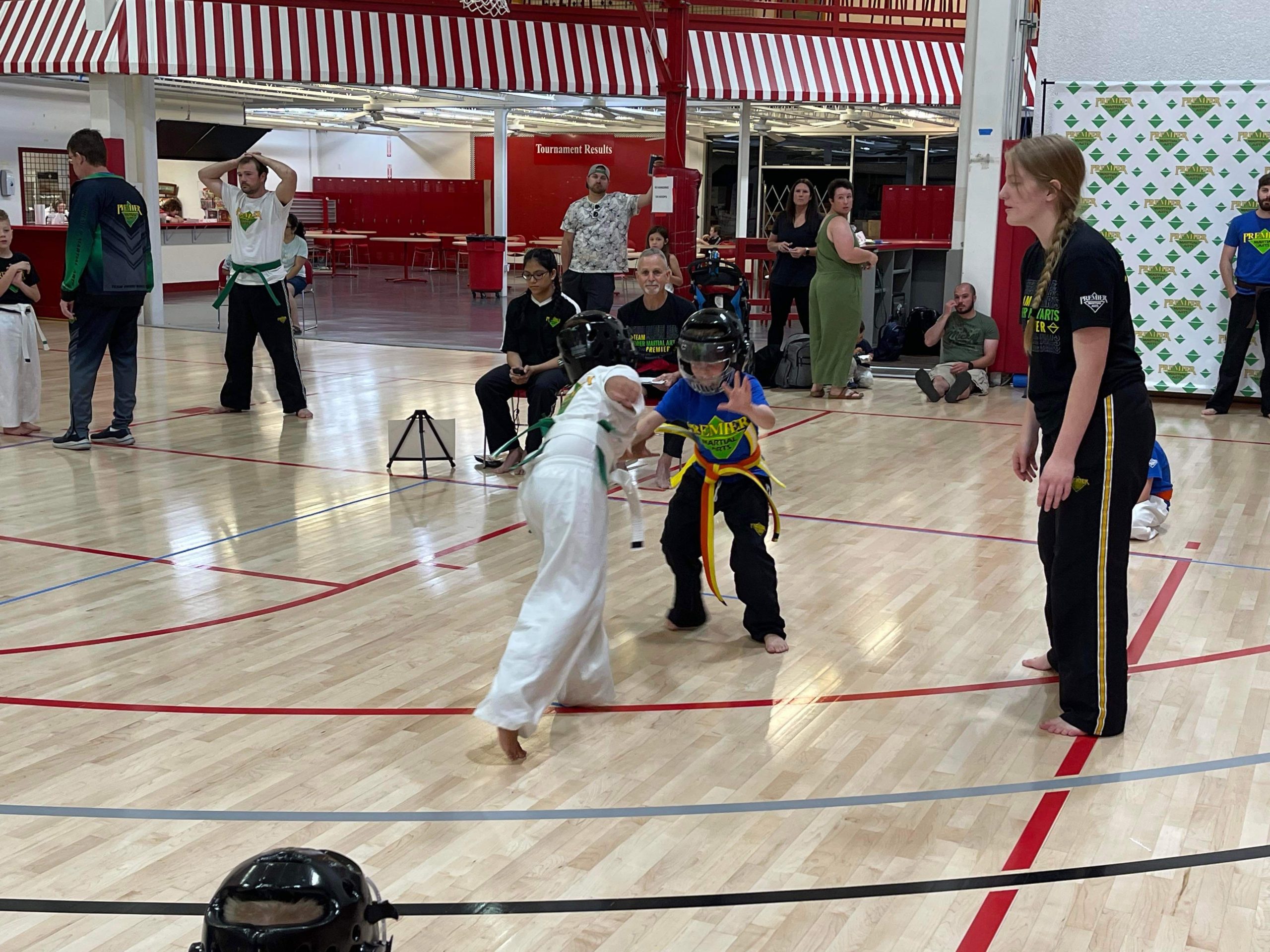 Earlier this summer Premier Martial Arts held an intramural tournament and sparring season for our three schools at Spiece Fieldhouse. This was a 6 week long event culminating in an intramural tournament. Not was it fun but it was a great way to introduce students to how a martial arts tournament works.