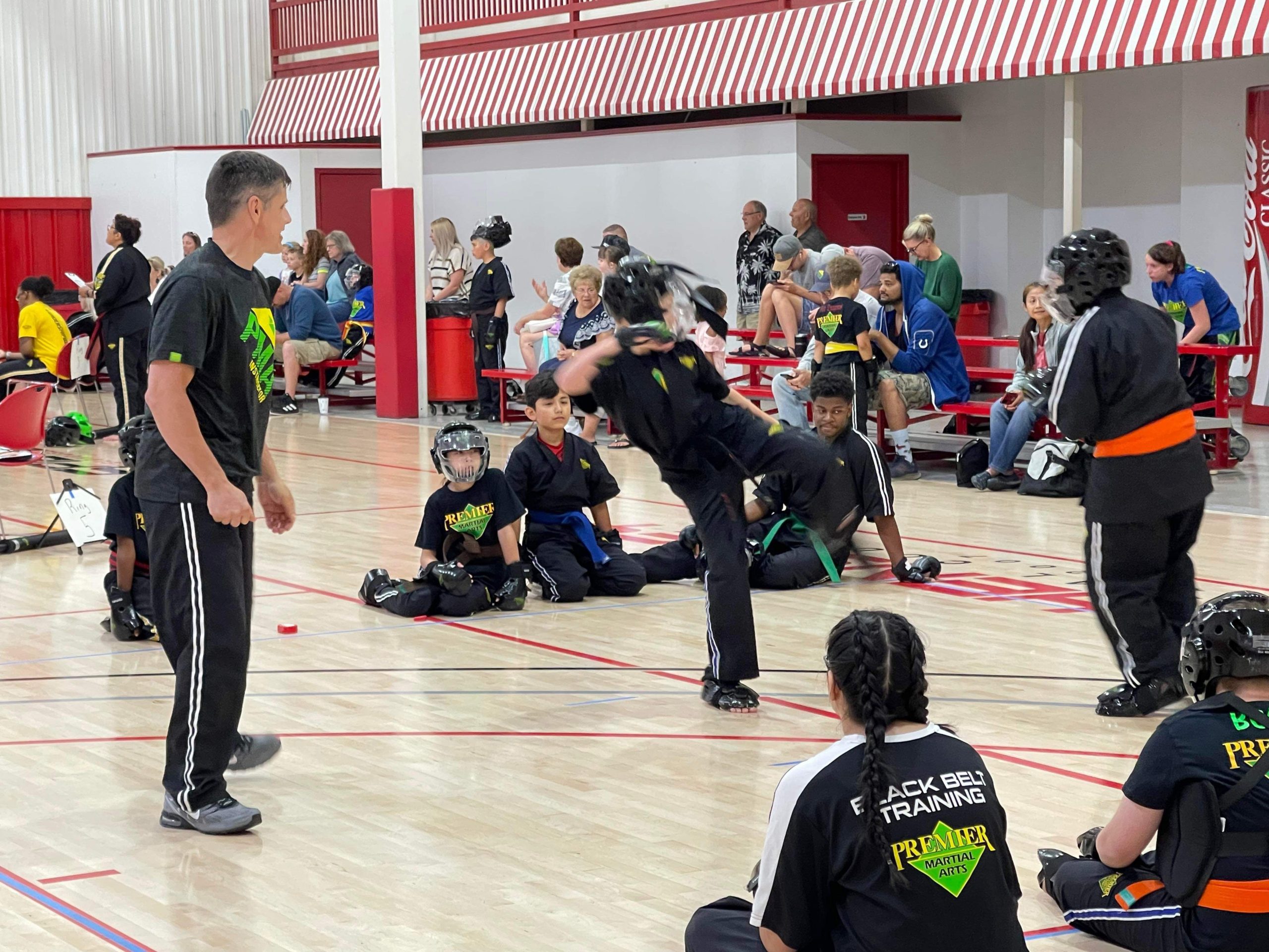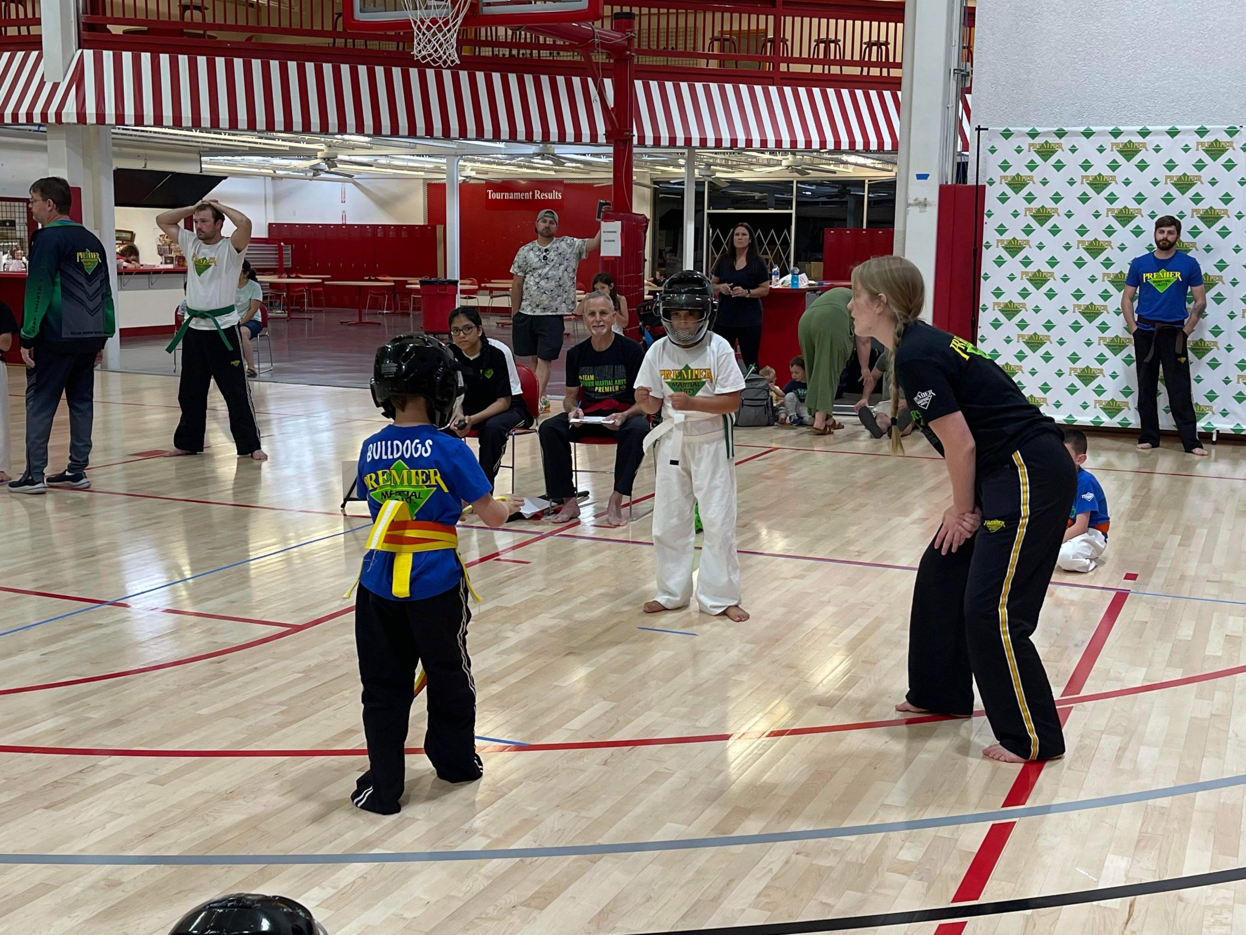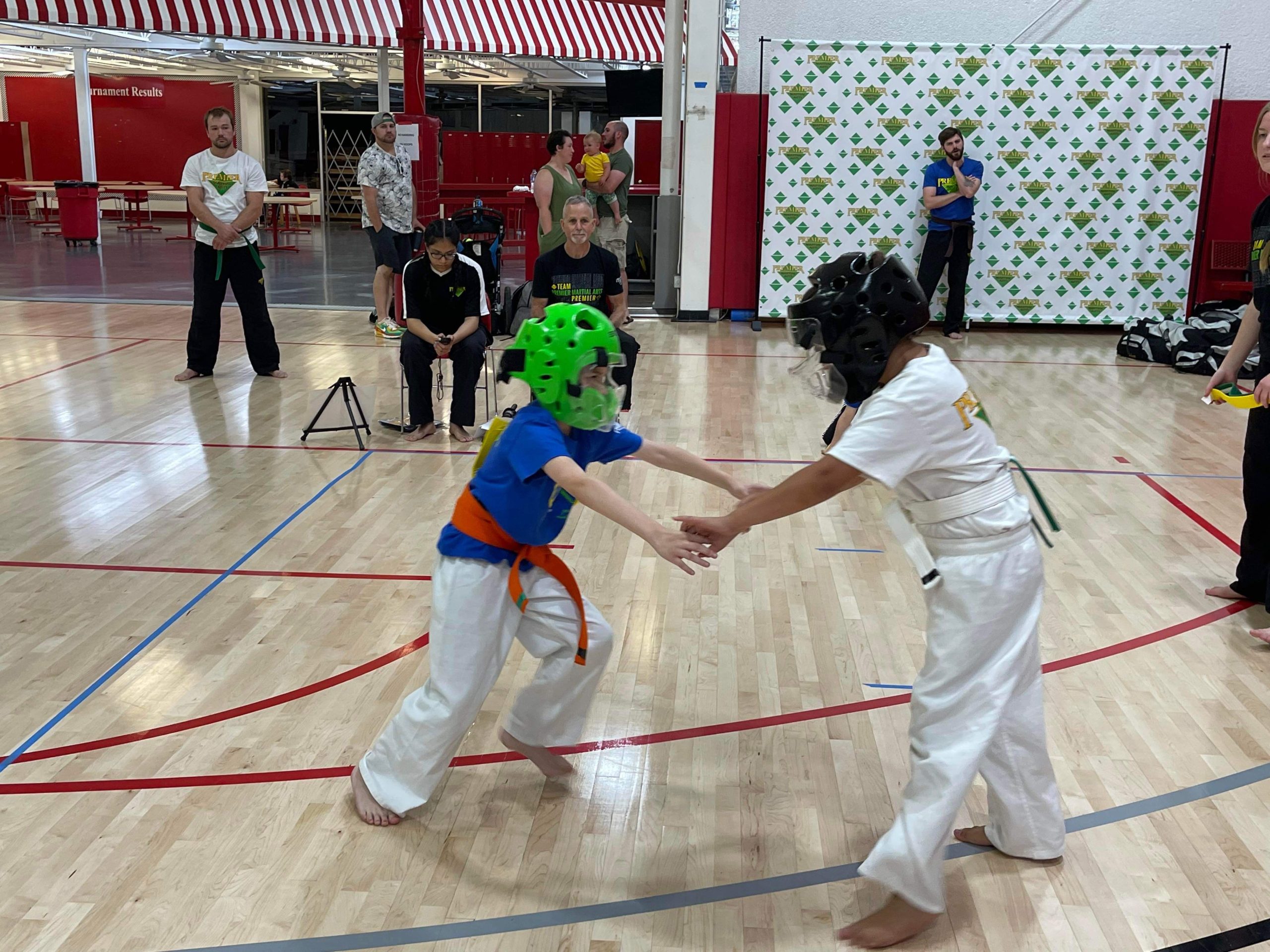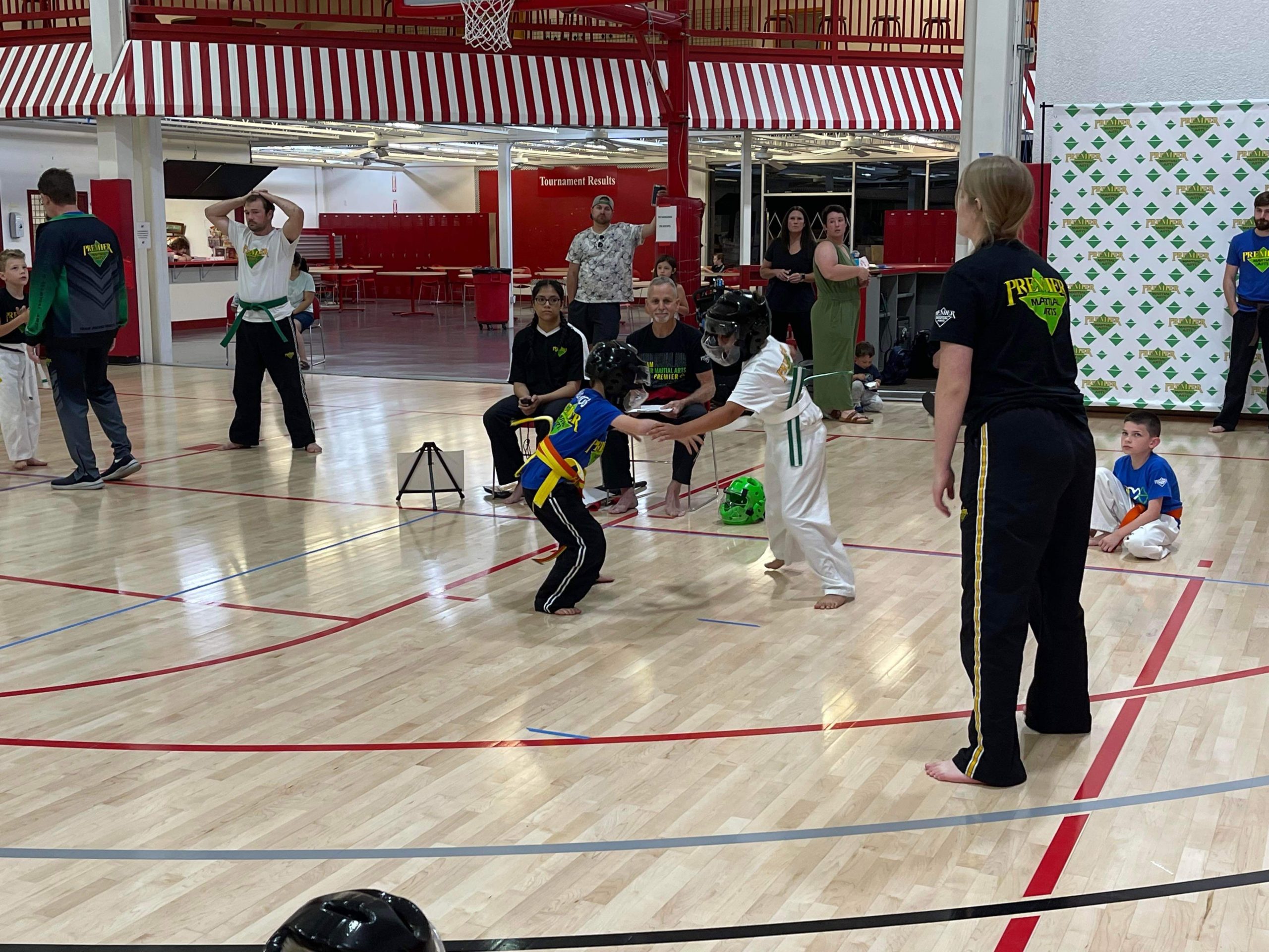 Earlier this summer Premier Martial Arts held an intramural tournament and sparring season for our three schools at Spiece Fieldhouse. This was a 6 week long event culminating in an intramural tournament. Not was it fun but it was a great way to introduce students to how a martial arts tournament works.