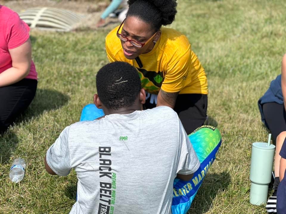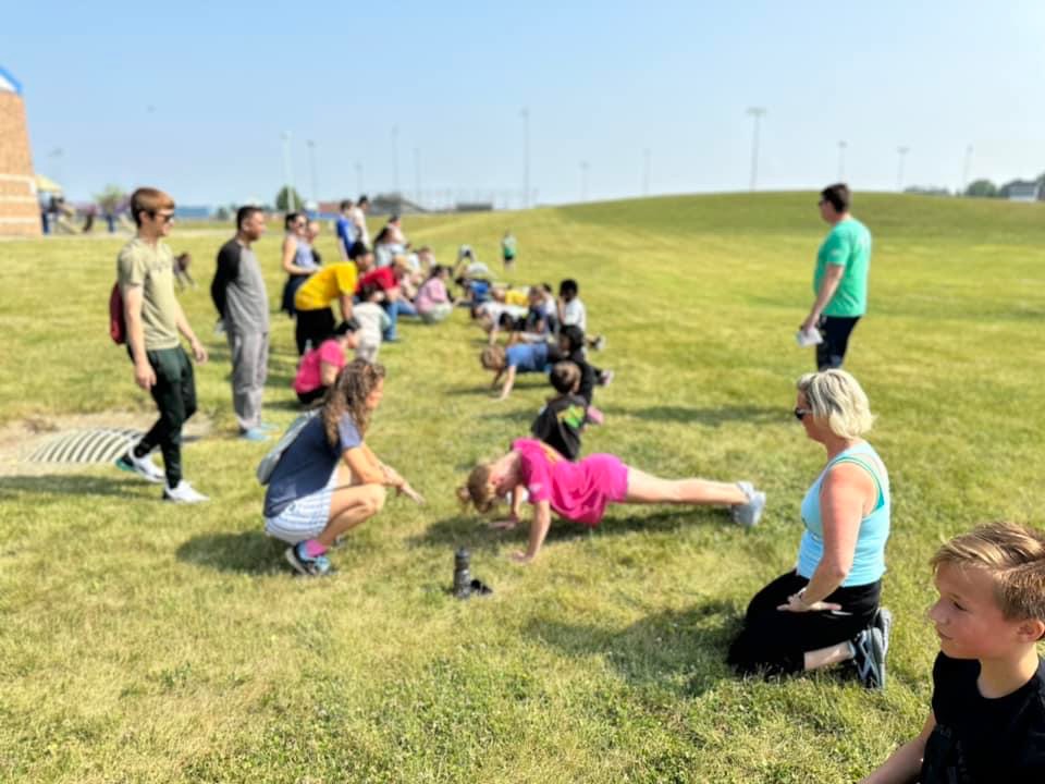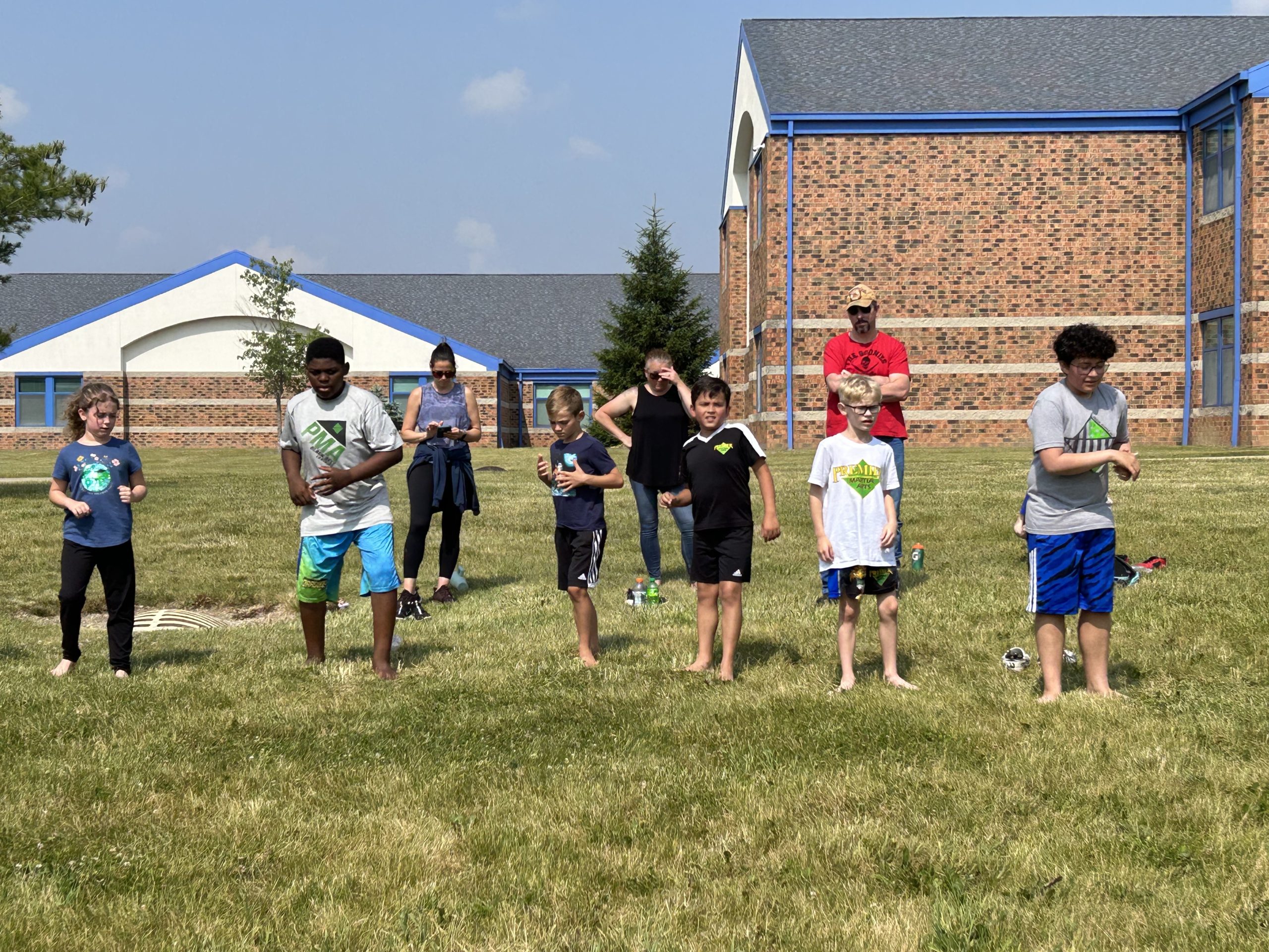 Premier Martial Arts Students met at Hickory Center Elementary on June 17th for a chance to test for and earn their fitness patches. Students had to perform: Push Ups, Sit Ups, Burpees, Run a mile, and perform 500 kicks all within time constraints.